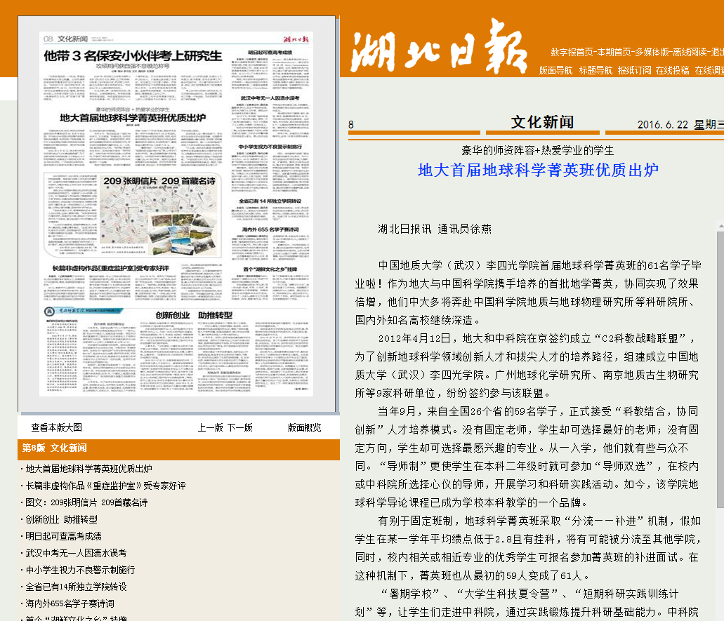 上一条:【中国国土资源报】科教“联盟”育栋梁—十大买球官方网站地球科学菁英班建设纪实