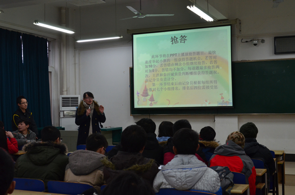 11月2日下午,十大买球官方网站在北综108教室举行了 “学习十八大知识竞答赛”活动。全院59名同学参加了此次竞答赛。通过抽签分组、抢答、必答、竞答等若干环节,最终确定了比赛的冠军队。通过此次比赛,旨在通过竞答的方式,对全院同学前期通过集中学习和自主学习“十八大”会议精神的情况进行一次考核,促进同学们开展更为全面的学习,增进相互之间的交流。