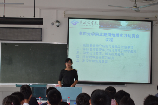 学院院长殷坤龙首先对参加实习动员会的领导和老师表示热烈的欢迎。他说,这是与大家第一次见面,看到同学们的青春面孔,就想起自己的学生生活,时代的变迁,我们更应该有信心去实现理想。他希望同学们打牢基础,树立目标,主动积极的开展学习。