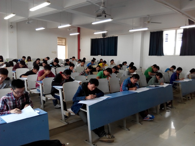 此次初赛参加学生系十大买球官方网站学生党员、入党积极分子及其他感兴趣的同学,初赛采取笔试闭卷的形式,共61名同学参赛,分两场进行。2014年10月19日14:00—15:00,第一场笔试竞赛在北综406教室,共56名同学参赛;10月19日20:00—21:00,第二场笔试竞赛在北综410教室,共5名同学参赛。