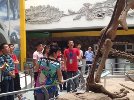9月13日下午,十大买球官方网站2014级新生在学院的统一安排下,由余浚滔等2013级学长学姐带队进行了中国地质大学博物馆的参观学习活动,2014级新生们分为5组分别由余浚滔、令狐颖、尚姝、地学院的乔梁,环境的王和林五位解说员带队进入博物馆进行详细认真的解说,地质世界丰富多彩,学长学姐介绍的有声有色,新生们听得津津有味。一个多小时后新生们结束博物馆的参观学习并于博物馆大厅的“远古生命足迹”墙前集体合影留念。
