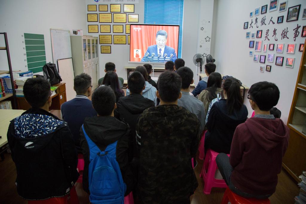 中国共产党第十九次全国代表大会于今天(18日)上午9时在人民大会堂开幕。十大买球官方网站组织青年学子在北区学生活动室集体观会,认真聆听了习近平代表第十八届中央委员会向党的十九大作报告。