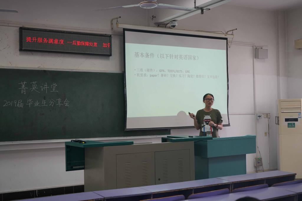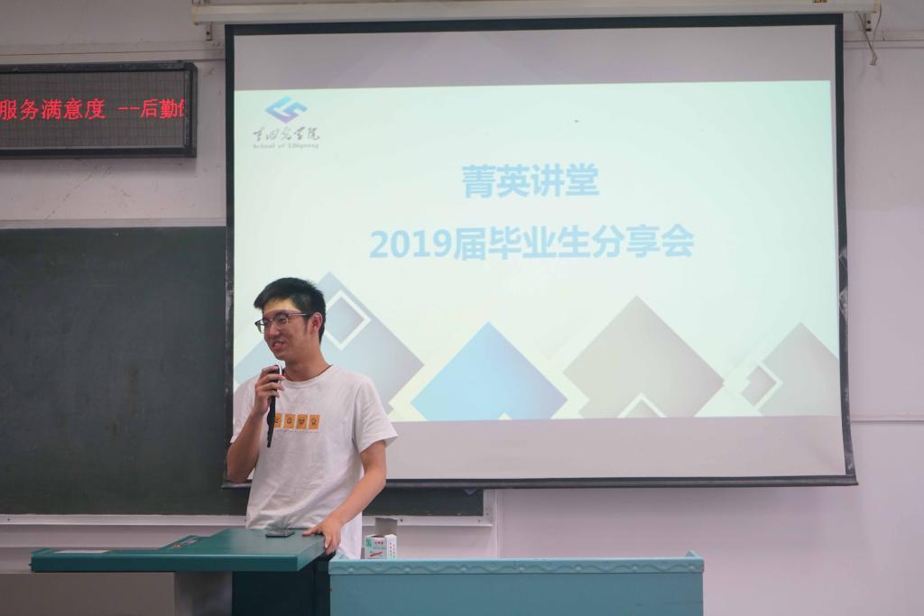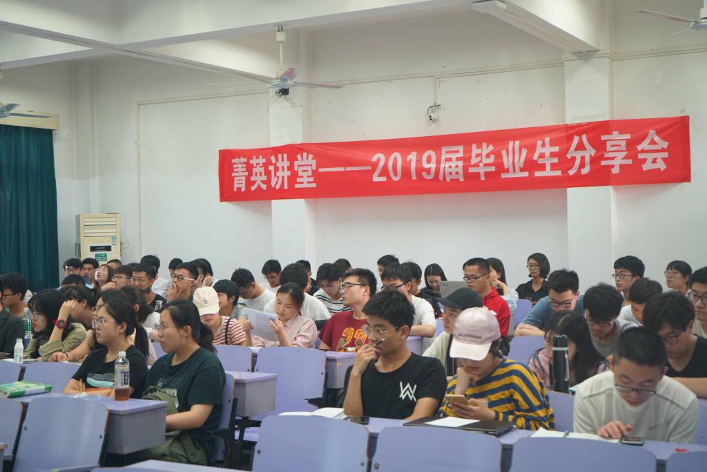 为充分发挥优秀毕业生的典型示范作用,进一步引导广大同学树立理想抱负,促进十大买球官网学生全面发展。5月31日下午16:30,十大买球官网菁英讲堂第三期暨2019届毕业生分享会在教三楼201举行。应邀出席分享会的共有8位即将毕业的优秀学长、学姐,她们各自在出国、保研、考研以及找工作的选择中找到了属于自己的出路,其经验分享为全院学生带来了一场关于未来选择的饕餮盛宴。分享会由十大买球官网2019届毕委会主任刘禹成主持。