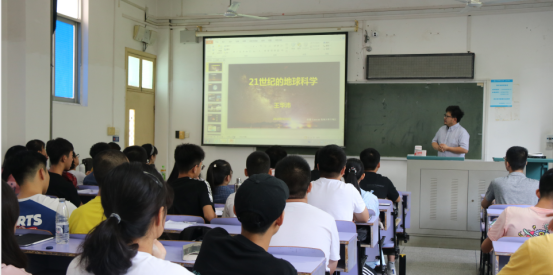 王华沛老师以“21世纪的地球科学”为主题 ,从“我是谁?”、“我从哪里来?”、“要到哪里去?”这三大终极问题说起,用地球科学的角度给出答案。王老师讲到:地球科学是一门时间与空间跨度非常大的学科,岩石矿物学和地球化学可以测量出宇宙年龄与地球上最古老的的矿物,从而拉开地球演化的序幕,告诉我们“我是谁”这一答案;古生物学、地球生物学、天体生物学则揭示了生命演化的过程,揭示了“我从哪里来?”这一问题,而地球科学领域中的海洋地质学、大地构造学等又带领着我们上天、入海、下海、登极,回答了“要到哪里去?”这一问题。因此,困惑人类的三大终极问题都能从地球科学这门学科中得到答案,这是一门充满魅力又神秘莫测的学科。王老师生动幽默的话语和张弛有度的风格,一下子将同学们吸引,让2019级的新同学对地球科学这门学科充满好奇的同时又满怀憧憬。