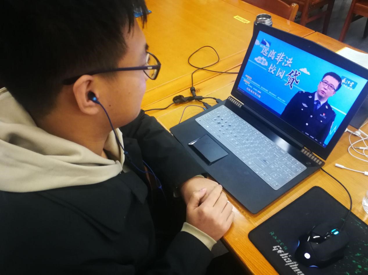2018级邱一鑫同学说:学校在今日开展了“远离非法校园贷”专题讲座,旨在提高大学生识别、防范和应对“非法校园贷”的能力。在直播中,别开生面的“套路贷”剪纸艺术短片,生动形象的介绍了“非法校园贷”的套路类型,让我们加强了对“非法校园贷”的认识。通过老师细致的讲解,我们主要学习了非法校园贷知识,提升了防范化解金融风险意识。远离非法校园贷,谨防诈骗,本次专题讲座令我受益匪浅。