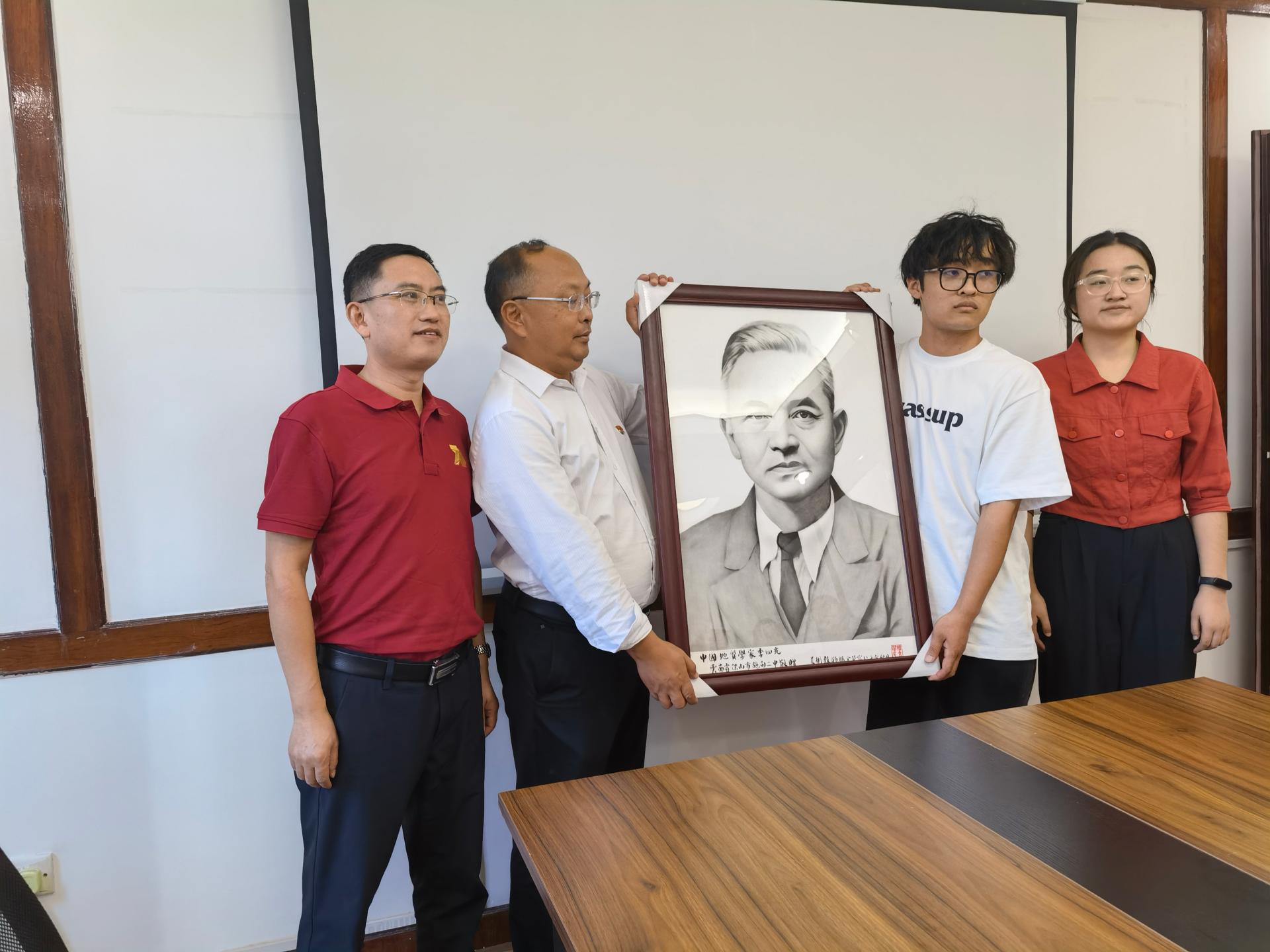 十大买球官方网站自2012年成立以来,以“科教结合、协同育人”为办学特色和育人宗旨,通过十年办学,已培养出七届毕业生,在社会上也有着良好的反响和广泛的社会影响。值此十大买球官方网站建院十周年之际,云南省保山市施甸县第二完全中心的杨余荣老师以笔为画,向十大买球官方网站全体师生捐赠李四光先生青年时期以及中年时期的画像两幅,勉励全体李院学子不忘四光先生精神,在地球科学领域的科研方向上追求卓越、再攀高峰!