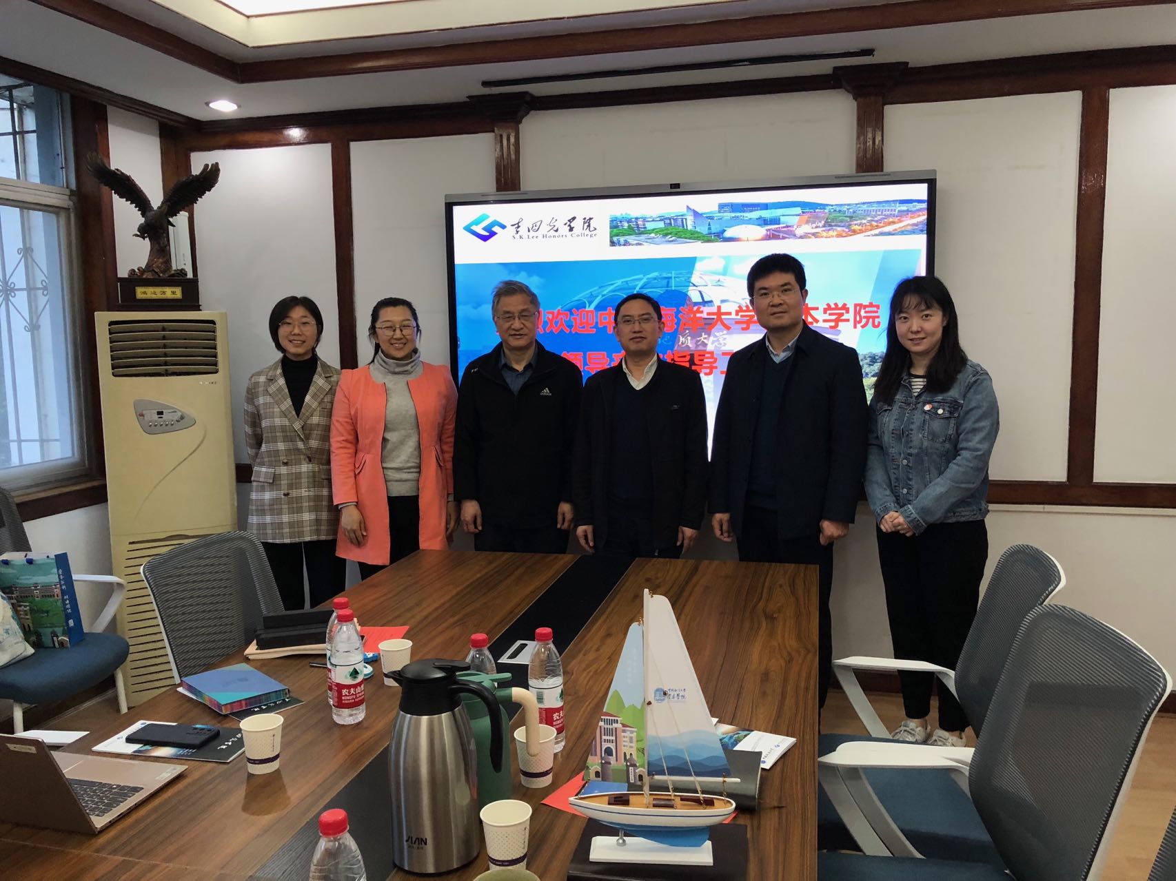 为创新人才培养模式,加快推进荣誉学院相关制度建设,拓宽国内外交流合作平台,4月23日上午,中国海洋大学崇本学院院长高会旺、副院长陈青、秘书孙梦雪一行3人赴十大买球官网进行调研,十大买球官网常务副院长单华生、副院长宋小青、张建和以及学院辅导员李若萌参与交流。