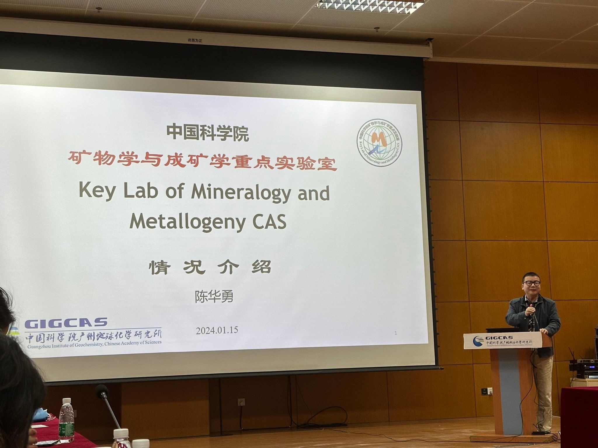 图4 .中国科学院矿物学与成矿学重点实验室陈华勇副主任做报告