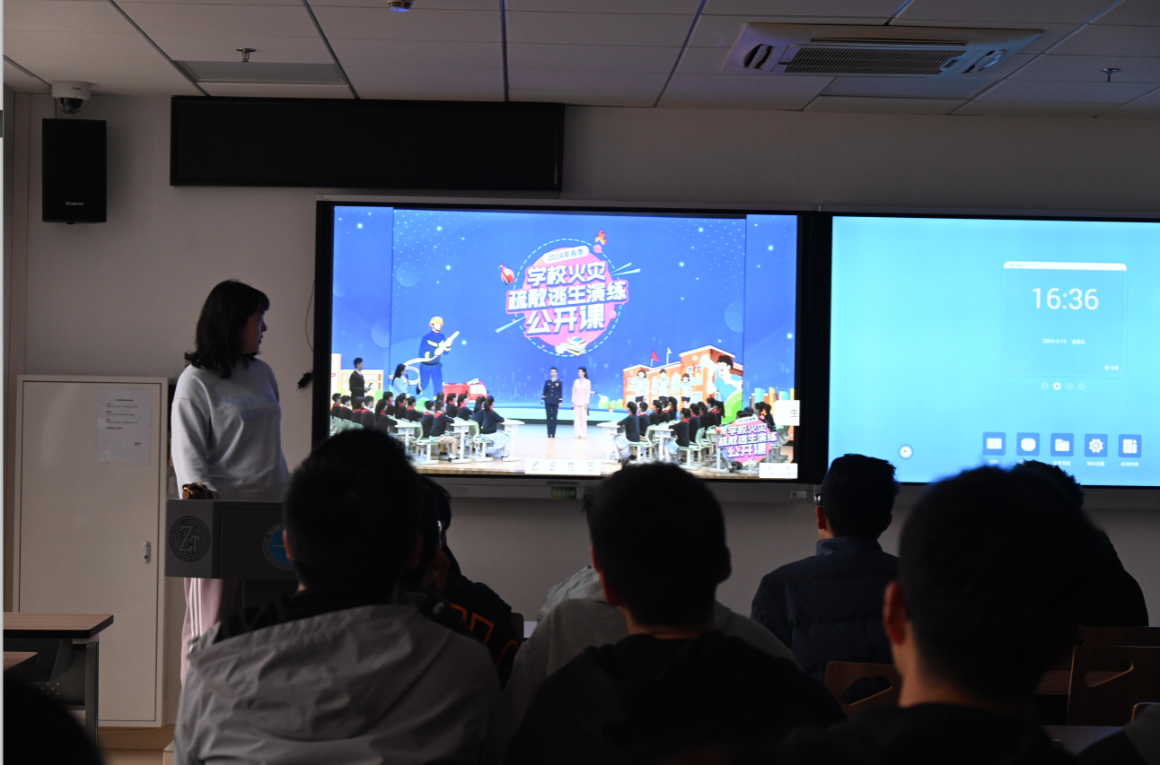 同学们正在观看2024年春季学校火灾疏散逃生演练公开课