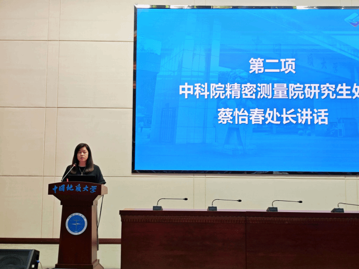 图2.中科院精密测量科学与技术创新研究院研究生处副处长蔡怡春老师讲话