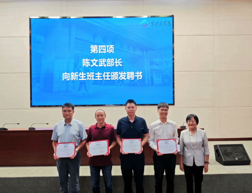 图4.校党委常委、组织部、统战部部长、机关党委书记陈文武老师为新生班主任颁发聘书 |