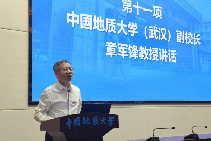 副校长章军锋教授为新生寄语。他指出,当下“十四五”收官、“十五五”将启,地球与行星系统科学面临深地资源安全、生态与碳循环、自然灾害监测预警、行星探测与生命边界等一系列前沿命题,期待同学们“严格自律、向下扎根、融合交叉、挺膺担当”,以严谨的证据链、开放的学科视野与可被现场检验的真本领,回应国家重大需求与人类共同关切。