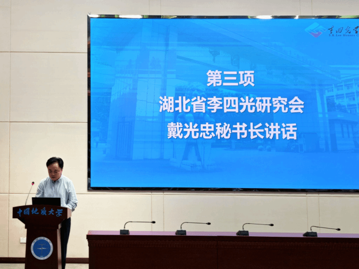 图3.湖北省李四光研究会秘书长戴光忠秘书长讲话