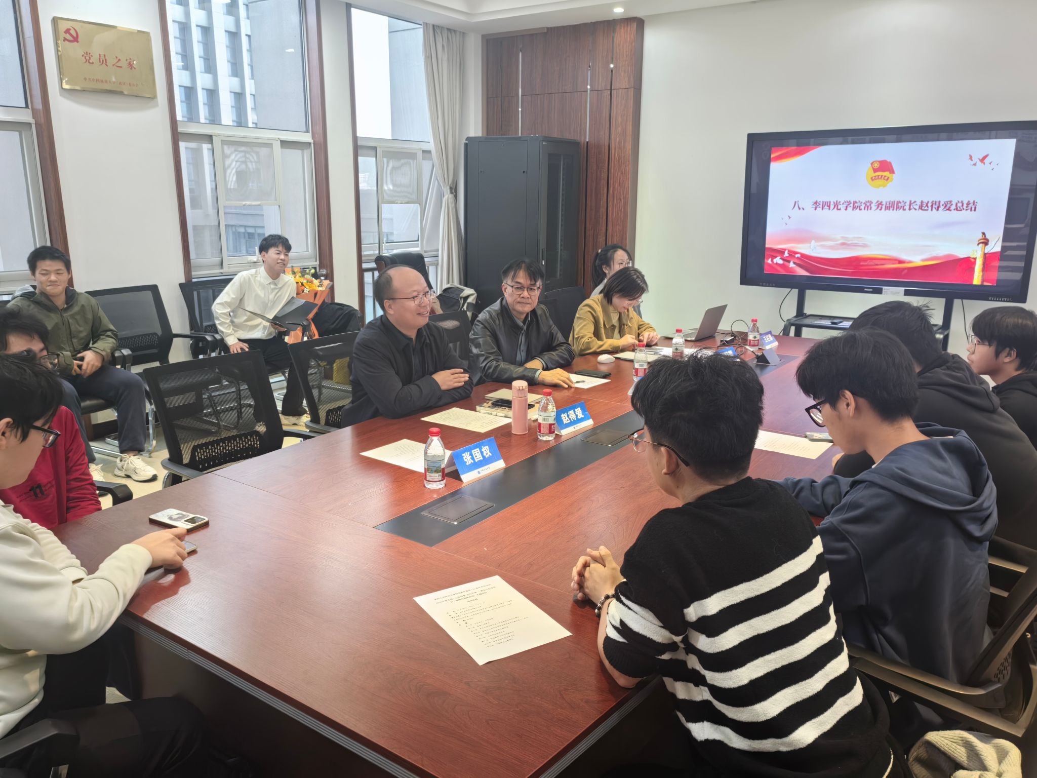 团课结束后,与会师生展开热烈交流。团员们踊跃发言,结合自身专业学习、野外实践经历,分享了自己的独特见解,以及在科研中追求严谨、在服务中践行奉献的思考。郑建平教授、赵得爱副院长、刘明辉副书记耐心回应团员疑问,从学术方向选择、科研能力培养、青年责任担当等方面给予指导,现场氛围热烈而真挚。