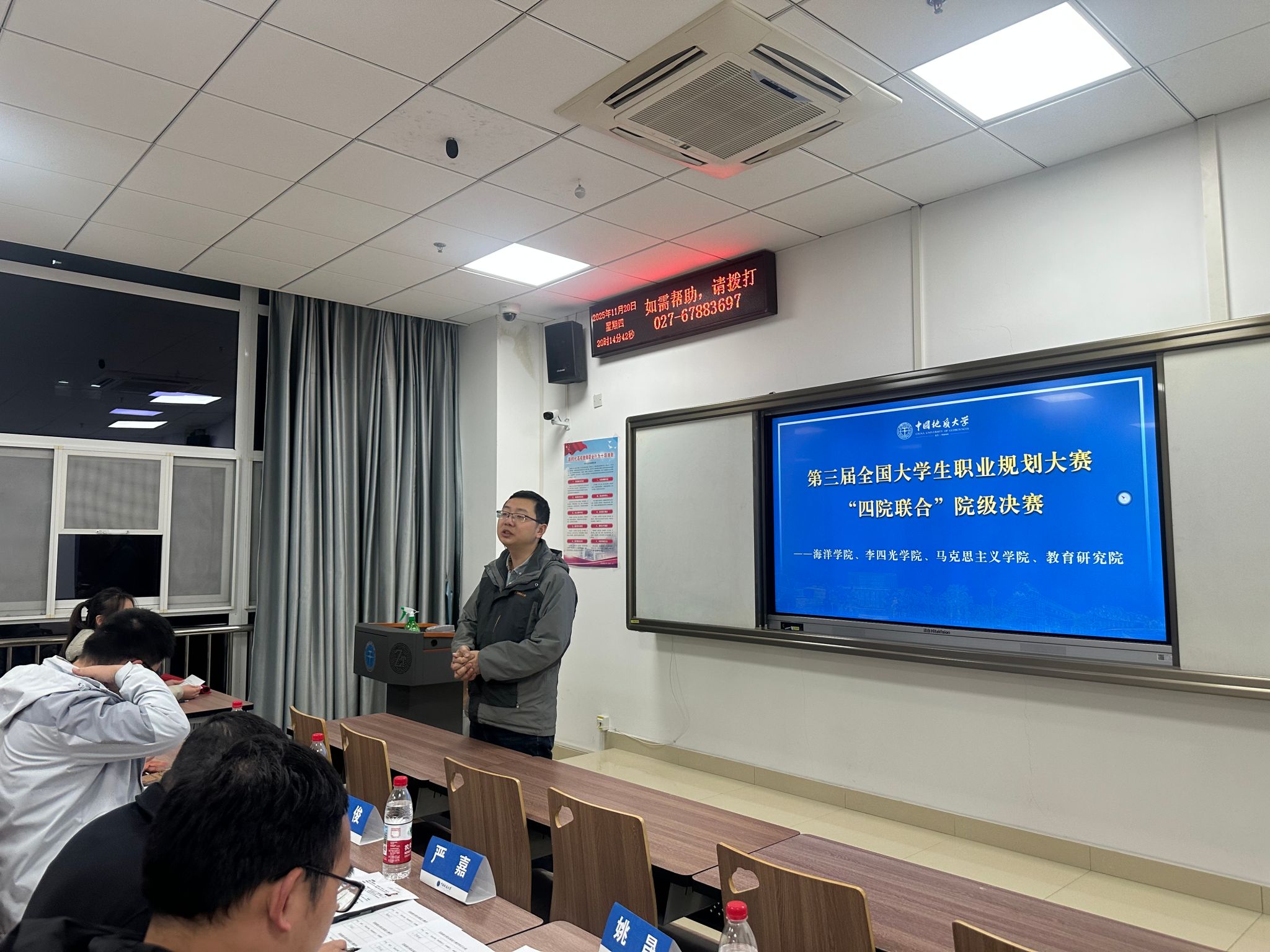 为深化高校生涯教育内涵建设,强化就业指导服务实效,引导大学生树立科学职业观与发展观,11月20日晚,由马克思主义学院、海洋学院、十大买球官方网站、教育研究院联合主办的第三届大学生职业规划大赛决赛在东区综合楼顺利落幕。经过院级初赛、专题培训等多轮严格筛选与激烈角逐,来自四院的12名优秀学子从众多参赛者中脱颖而出,在决赛舞台上充分展现了新时代青年的职业追求与青春担当。