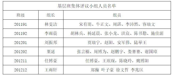 1、各班集体基层评议小组名单。