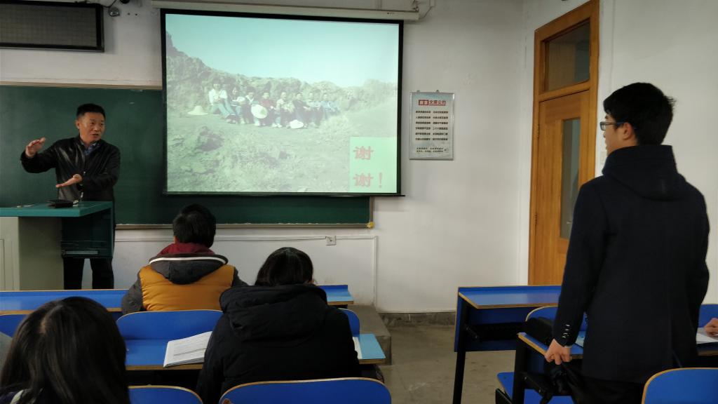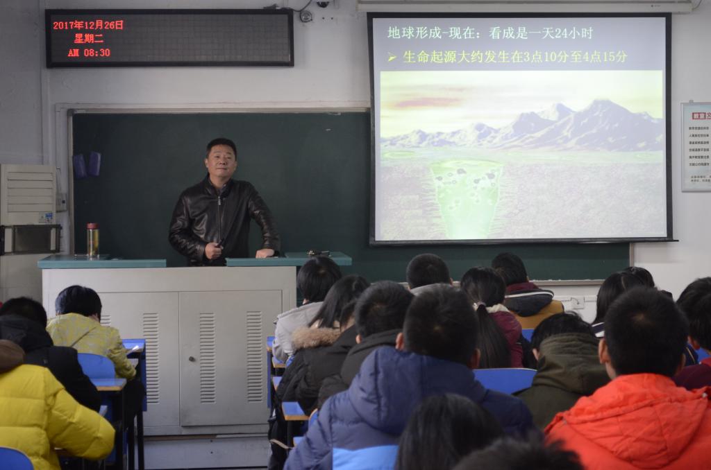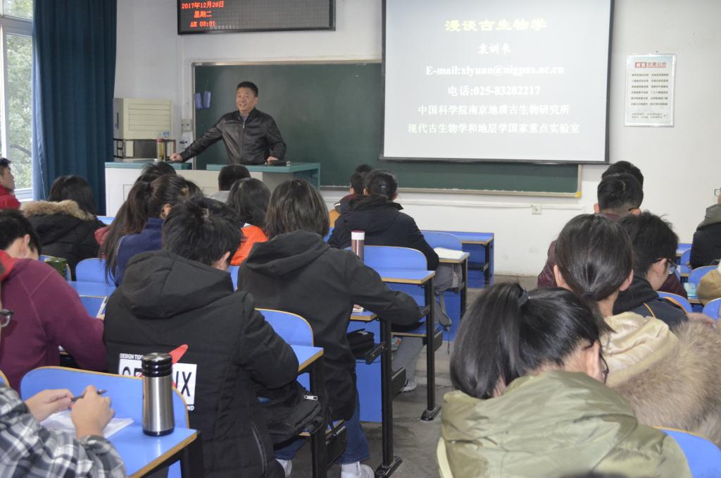 12月26日上午8:00,十大买球官方网站2017年地球科学导论课第五讲在教一楼206顺利开课,中科院南京地质古生物研究所袁训来老师为十大买球官网2017级学生带来“漫谈古生物学”主题讲座。