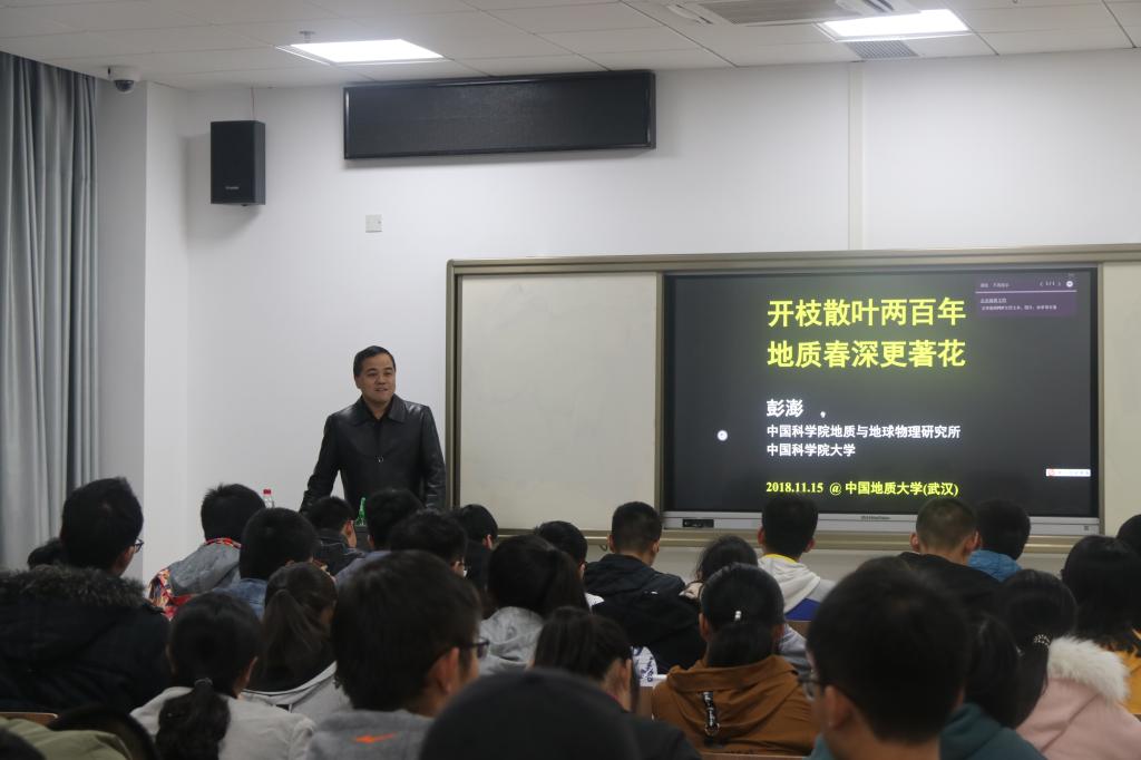 11月15日下午16:00,十大买球官方网站2018年地球科学导论课第一讲在东区综合教学楼B0106室顺利开课,中科院地质与地球物理研究所彭澎老师为十大买球官网2018级学生带来“开枝散叶两百年,地质春深更著花”主题讲座。