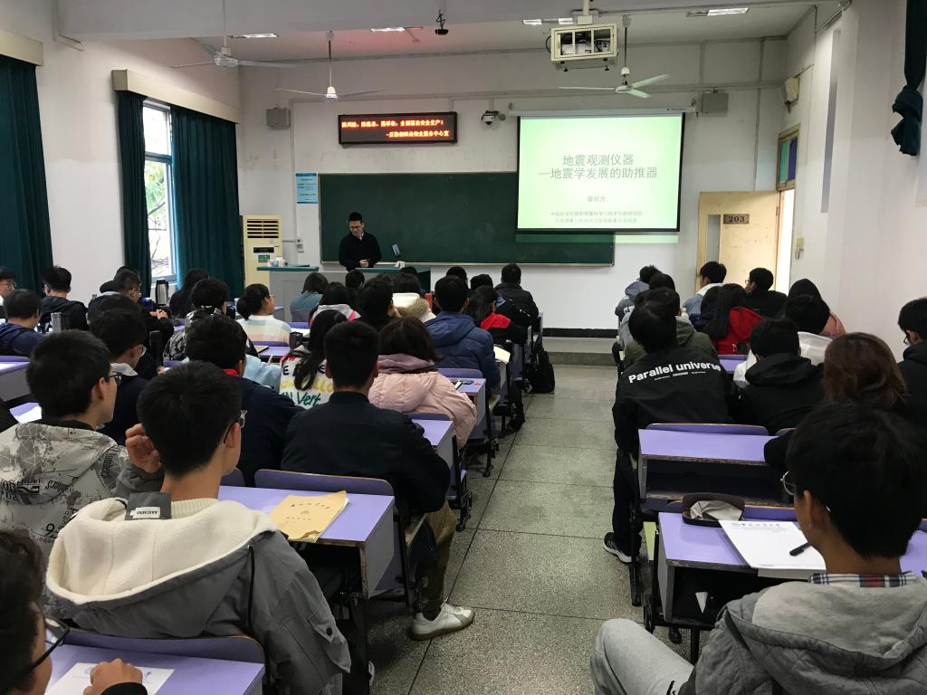 11月19日上午8:00,十大买球官方网站2019年地球科学导论课第一讲在教三楼203教室顺利开课,中科院精密测量科学与技术创新研究院曾祥方老师为十大买球官网19级学生带来“地震观测技术--地震学发展的助推器”为主题的报告。
