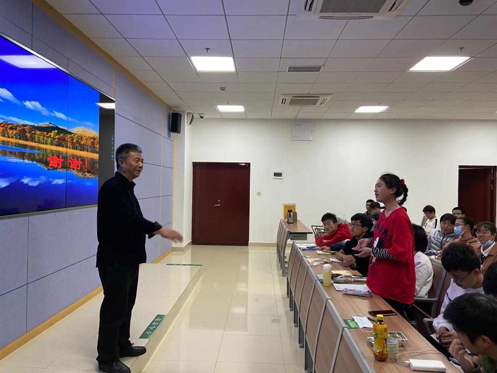 接下来,袁老师与同学们分享了关于对“蓝田生物群”的系统研究和对“三峡埃迪卡拉生物群”的探索和发现,“三峡埃迪卡拉生物群”是我国发现的最大规模也是最有影响力的古生物群,填补了早期多细胞生物化石的空白,在看似不规律的化石中寻找历史演化的证据,也点燃了同学们对古生物学的热爱之情。同时,在袁老师看似云淡风轻的表述下,暗含的是地质人,是科研人员对研究坚韧不拔的精神,也更能让同学们感到,真实的故事最具有力量。