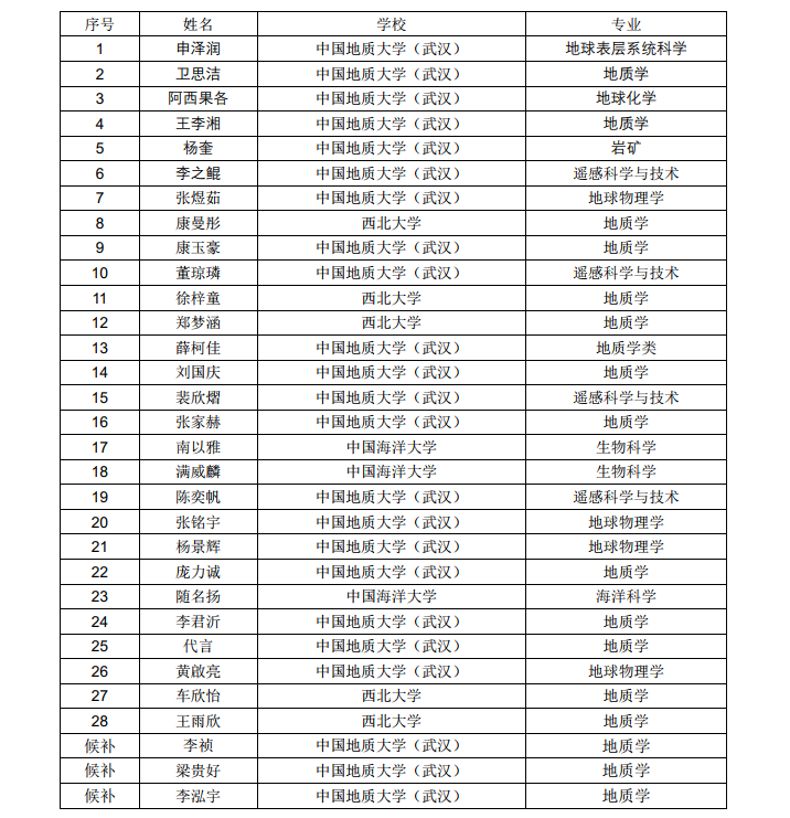根据《关于举办中国地质大学(武汉)“拔尖计划2.0”神农架大九湖地区综合科考暑期学校的通知》,经个人报名、学院评议,确定如下学生入选2024年神农架大九湖地区综合科考暑期学校,现予以公示。