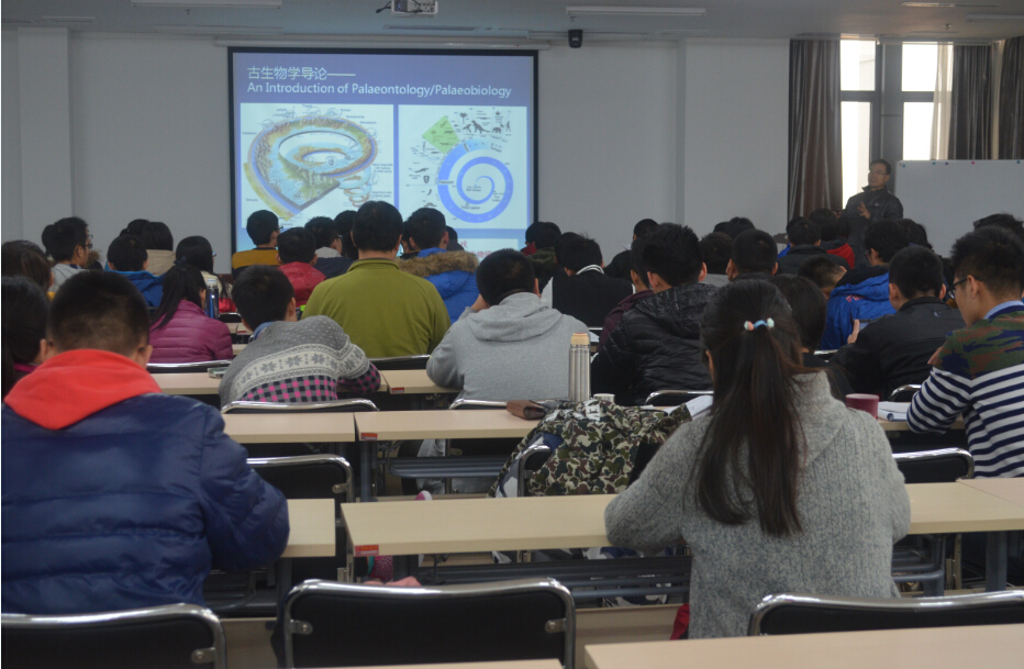 12月4日上午10:00,十大买球官方网站2015年地球科学导论课第五讲在图书馆十楼学术报告厅顺利开课,中科院南京地质古生物研究所王军老师为十大买球官网15级学生带来“古生物学导论”主题讲座。